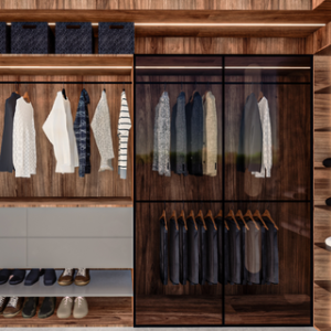 Con iluminación interna activada por movimiento y sistemas motorizados para facilitar el acceso a la ropa y accesorios.